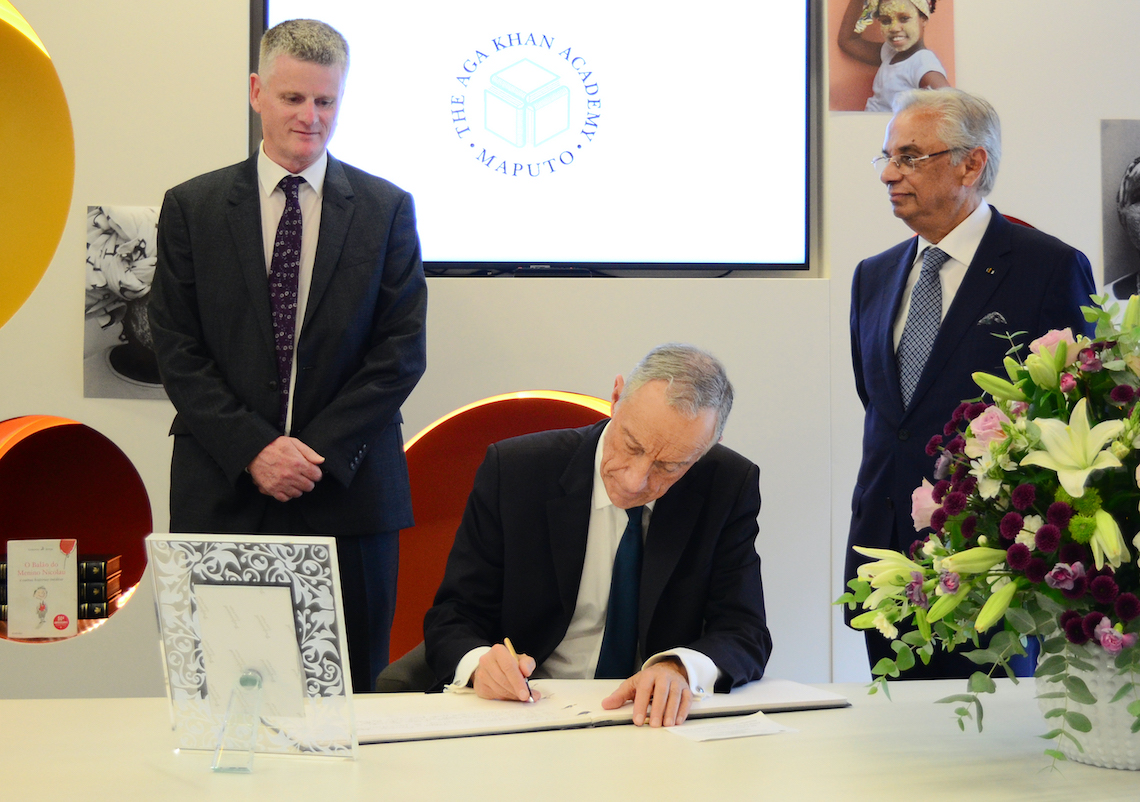 Before departing, President Marcelo signed the Academy’s guest book, writing a message of congratulations to His Highness the Aga Khan “for this model of excellence, of inclusion, of dialogue, of future. And, with him, all those who have made it an impressive reality in teaching, education, social and cultural gathering, and a contribution to a more progressive, advanced and developed Mozambique.”