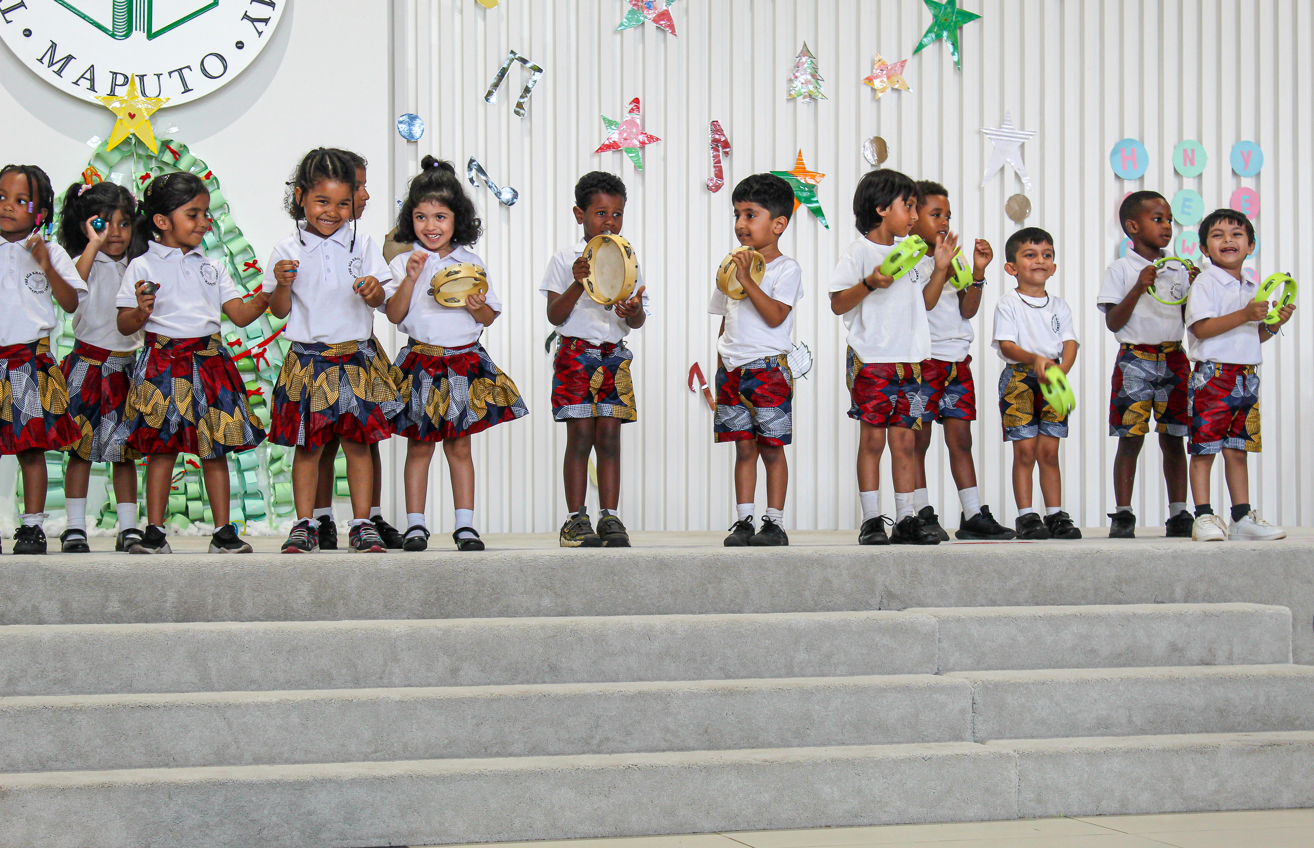 Organised by the JS student council, Music Teacher Terencio Tovele and Visual Arts Teacher Rosa Jorge, the concert featured students from KG-Grade 2. The students sang songs and carols and recited poems in both English and Portugese to showcase their bilingual knowledge through visual arts. The audience enjoyed the performances, with many singing along to the songs.